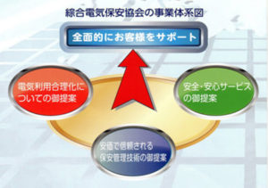経営理念 次世代型電気保安サービスの提供により企業をサポート 急激に進む経済のグローバリゼーションは、あらゆる分野で国境を超えて生産を促し、新しい分野を生み大きく変動しています。 このような状況の中で、私達は何を試すべきか、何が社会に役立つか。 そして弊社は様々な企業と関わり、少しでも良い提案を他企業とのコラボにより、安全と安価な技術と責任を持って、社会に貢献できる企業として歩んでいきたいと考えています。